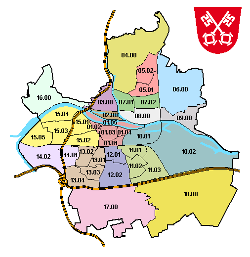 dem jeweiligen Stadtbezirk. Diese Unterbezirke besitzen dann als Unterbezirksnummer |