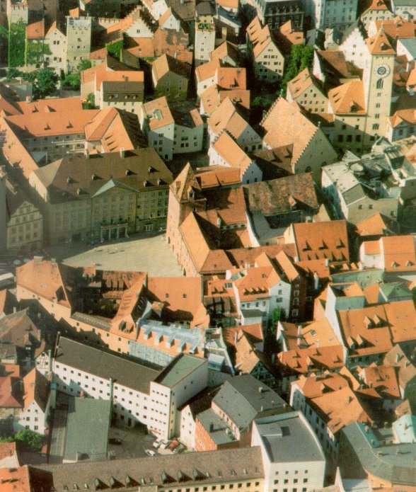 Der uns heute bekannte Komplex des Palais war so jedoch nicht immer präsent, vielmehr entstand er durch die Neugestaltung zweier eigenständiger mittelalterlicher Gebäude. (*2) Auf der westlichen Seite fand man zum einen des Patrizierhaus der mächtigen Familie Auer, auf der östlichen Seite zum anderen stand zur Baumhackergasse hin das sogenannte Allkofer'sche Haus. (*3) Beide Häuser wurden durch namhafte Familien bewohnt. Waren es im Westen die Familien Auer, Frumold, Graner, Schwäbl und Erlbeck, so fand man im Osten die Namen Hetzer, Agricola und Allkofer. (*4)