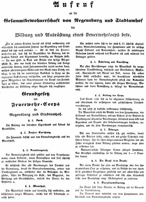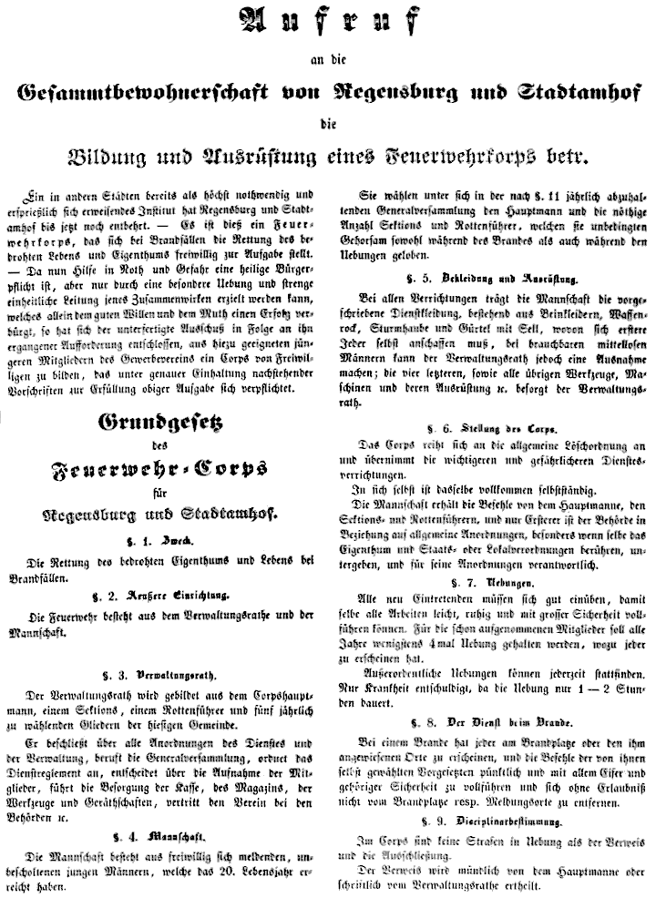 Dritter Teil: FeuerlöscherFeuerlöscher,von Hand tragbare Feuerlöschgeräte (bis Das Feuerlöschwesen in der Stadt Regensburg kann mittlerweile auf stolze 144 Jahre zurückblicken. 144 Jahre, die die Wehren in ständiger Bereitschaft zur Bekämpfung von Not und Gefahr verbrachten. 144 Jahre halfen die Einsatzkräfte bei Feuer und sonstigen Unglücksfällen und sehr viele, die sich freiwillig in den Dienst der Gesellschaft stellten, haben dabei ihr Leben verloren. Ihrer gedenken wir in steter Ehrfurcht. Im Mai 1860 begann die Herstellung der Feuerwehrgewölbe im Thon-Dittmer-Palais und die Einrichtung einer ständigen Feuerwache. Aus Platzmangel blieben bis zum Jahr 1922 viele Löschgeräte im Alten Rathaus untergestellt. Auch später musste die Feuerwehr Fahrzeuge außerhalb der angestammten Feuerwache in separat angemieteten Räumen unterstellen. (*11) Ab 1917 hatte die Feuerwache auch mehrere Räume an die städtische Berufsschule abzutreten.