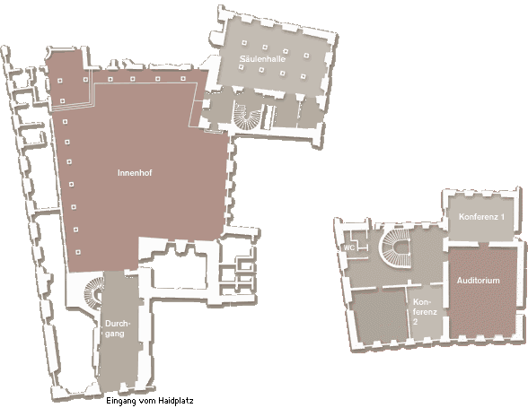Für Veranstaltungen stehen das Auditorium mit 198 Sitzplätzen sowie zwei kleinere Konferenzräume zur Verfügung. Hier können Konzerte, Vorträge oder Diskussionen durchgeführt werden. Aber auch für Kongresse oder Tagungen eignet sich das Raumensemble hervorragend. Umfangreiche Tagungstechnik ist selbstverständlich. Ein besonderer Vorteil ist der Umstand, dass sich das Büro des Saalmanagements ebenfalls im Gebäude befindet. Vergessen dürfen wir keinesfalls den zauberhaften Innenhof, der durch sein bestechendes Ambiente jeder Open-Air-Veranstaltung ein besonderes Flair verleiht. Für Ausstellungen bieten Sigismundkapelle und Säulenhalle die besten Voraussetzungen.
